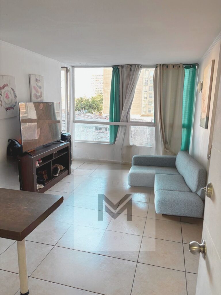 increíble departamento en el corazón de Santiago Centro! Disfrute de una ubicación privilegiada y un precio altamente competitivo en una zona de alta demanda. Este funcional departamento de 48 m2 ofrece dos dormitorios y un baño, ideal para solteros, parejas jóvenes o inversionistas. Ubicado en el piso 13 de un edificio de 26 pisos construido en 2015, este departamento usado se encuentra en excelente estado y listo para habitar. El edificio, emplazado en la comuna de Santiago, sector Santiago Centro, cuenta con orientación que optimiza la luz natural. Aunque no dispone de estacionamiento ni bodega, los gastos comunes son de $85.000 y las contribuciones ascienden a $30.000. Entre las características que destacan de este departamento, se encuentra la seguridad 24 horas, brindando tranquilidad y protección a sus residentes, lavandería, piscina, quinchos. La conectividad es inmejorable, con acceso a diversas líneas de transporte público que facilitan el desplazamiento a cualquier punto de la ciudad. En sus alrededores, encontrará una amplia oferta de comercios, servicios, colegios y centros de salud, lo que garantiza una excelente calidad de vida. La cercanía a importantes vías de acceso permite un rápido desplazamiento en vehículo particular. Gastos comunes 85.000 mensuales + agua caliente Valor de venta 2.900 uf Domitorios 2 Baños 1